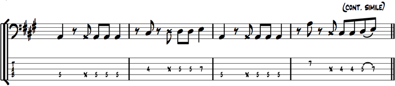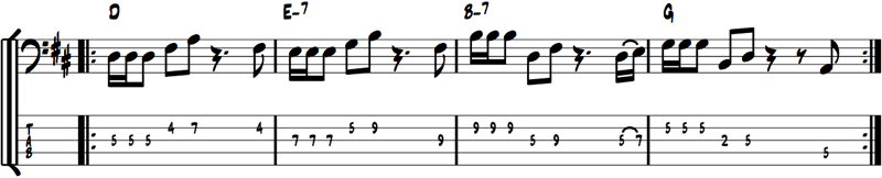 Here’s a South African-esque groove in the style of Bakithi Kumalo’s fantastic part on Paul Simon’s You Can Call Me Al (from the Graceland CD).